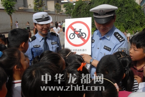 ????5月29日,七一交巡警大隊(duì)來(lái)到六一路小學(xué),為小朋友們上了一堂內(nèi)容豐富、形象生動(dòng)的交通安全知識(shí)宣傳課并向?qū)W生們發(fā)放了《小學(xué)生交通安全手冊(cè)》。根據(jù)小學(xué)教育的特點(diǎn),民警通過(guò)與學(xué)生們一起做游戲,寓教于樂(lè),圍繞交通信號(hào)、指揮手勢(shì)、識(shí)別交通標(biāo)志標(biāo)線、文明行走、文明乘車等內(nèi)容開(kāi)展講解,引導(dǎo)小朋友們做到“紅燈停,綠燈行”。并借助生動(dòng)活潑的宣傳圖片展示,圍繞交通安全常識(shí)開(kāi)展互動(dòng)競(jìng)猜等容易接受的方式開(kāi)展宣傳,為學(xué)生們上了一堂形象生動(dòng)的交通安全課,引導(dǎo)其從小樹(shù)立文明交通意識(shí)。