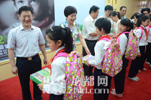 本報訊 為助力每一位貧困女孩實現(xiàn)美好的夢想,7月13日,2015年“圓夢女孩志愿行動周口行”啟動儀式在周口飯店舉行。啟動儀式上,有關(guān)領(lǐng)導(dǎo)不僅為志愿者頒發(fā)了證書,為志愿者隊伍授旗,還為太康縣圓夢女孩代表贈送了書包和圖書。