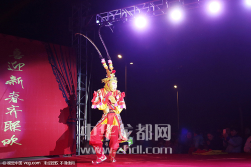 ????還記得小時候我們搬著小板凳到村頭看電影或聽?wèi)騿幔咳缃癜?,農(nóng)民不再看電影聽?wèi)蛄?,而是開始在村頭辦“村晚”啦。2月2日晚上,太康縣老冢鎮(zhèn)孟莊行政村舉辦了一臺猴年“村晚”。演出現(xiàn)場震天的鼓點和著嗩吶的節(jié)拍,熱鬧非凡。英俊的公子、羞怯的大家閨秀,神采奕奕的大爺大媽,一個個生動的角色,一段段幽默詼諧的節(jié)目,吸引著附近數(shù)十個村的兩萬余名村民在此觀看。