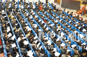 圖為與會代表和委員在認(rèn)真聽取政府工作報告。