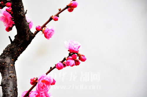????迎春故早發(fā),獨自不疑寒;畏落眾花后,無人別意看。近日天氣晴暖,梅花遍開。在淮陽縣龍都上梅苑內(nèi),紅色、粉色、白色的梅花繽紛綻放枝頭,很是惹人喜愛。