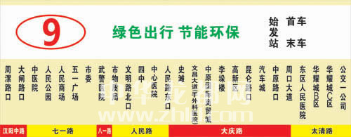 調(diào)整后,9路公交車的運(yùn)行線路是:從周漯路口出發(fā),經(jīng)漢陽(yáng)中路、七一路、八一大道、人民路、大慶路,最后經(jīng)太清路到達(dá)華耀城終點(diǎn)站,往返運(yùn)行。