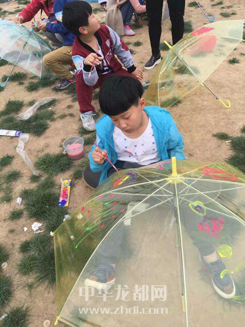 ????當(dāng)日15時,手繪愛心傘義賣公益活動在歡快的舞蹈中拉開帷幕。隨后,志愿者把報名參加活動的少年兒童分成4個組。接著,小朋友們開始在白色傘上畫畫。有的小朋友在傘上畫上五顏六色的小花,有的小朋友在傘上畫上樹和房子,有的小朋友則在傘上畫上很多可愛的小動物……