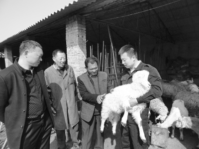 ?????2月29日,榮獲河南省十佳“村官”的商水縣鄧城鎮(zhèn)大學(xué)生“村官”、許村第一書記張耀(右一)在自己創(chuàng)辦的養(yǎng)羊場(chǎng)向養(yǎng)羊戶傳授養(yǎng)羊技術(shù)。近兩年,在張耀免費(fèi)提供技術(shù)、優(yōu)惠價(jià)提供種羊、負(fù)責(zé)銷售等幫助下,楊灣、吳灣、楊河、許村等行政村的300多戶群眾也通過發(fā)展養(yǎng)羊走上了致富之路。 喬連軍攝
