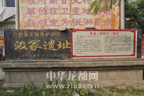 ????位于鄲城縣汲冢鎮(zhèn)張莊村北,南臨淮(陽)鄲(城)公路。據(jù)傳西漢時期曾任淮陽太守的汲黯死后葬此,故名汲冢。遺址現(xiàn)存面積約200平方米,內(nèi)含仰韶、大汶口、龍山和商周文化遺存。遺物中仰韶、大汶口文化陶片較少,僅見夾砂紅陶片、鴨嘴形鼎足和陶觚等。龍山文化陶片較多,以泥質(zhì)和夾砂灰陶為主,也有少量褐、黑陶,飾籃紋、方格紋和繩紋。器形有平底盆、罐、罐形鼎、甗、碗、杯等。商周文化的陶器有大口尊、盆、鬲和罐等。此外還發(fā)現(xiàn)有漢代遺物。????