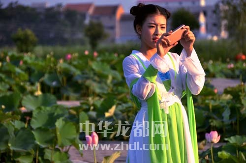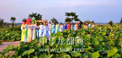 ????淮陽龍湖國家濕地公園荷花品種眾多、花期長達3個月,每逢周末,游人紛至沓來。日前,一群來自周口市區(qū)的古裝秀愛好者在這里撫琴弄簫、漫步花叢,仿佛穿越時空、從唐詩宋詞中走出的仙子,如夢如幻,宛若仙境。