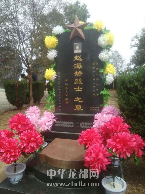 ????2015年10月,周口市鹽業(yè)局干部康國富和胡東周受市委組織部指派,到商水縣鄧城鎮(zhèn)周莊村駐村。2016年3月,康國富和胡東周在村里召開黨員大會時,偶然了解到趙海靜的事跡,深受感動。他們經(jīng)過調(diào)查、走訪,確認了趙海靜烈士的事跡。于是,他們先后向周口市委組織部、商水縣委組織部有關(guān)領(lǐng)導(dǎo)作了匯報,懇請有關(guān)部門為趙海靜修墓立碑。他們的請求得到了市縣兩級組織部門的大力支持,鄧城鎮(zhèn)民政所和商水縣民政局聞訊后也積極配合。