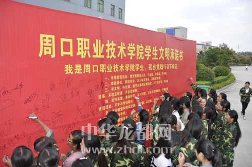 ????本報(bào)訊 昨日,周口晚報(bào)記者從周口職業(yè)技術(shù)學(xué)院了解到,新學(xué)期開(kāi)始后,該校近萬(wàn)名在校大學(xué)生簽訂了《學(xué)生文明承諾書(shū)》。承諾書(shū)中包含十條學(xué)生守則,為學(xué)生們的校園生活指明了方向。