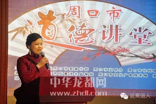 ????本報訊 11月4日上午,受市委宣傳部、市文明辦、市質(zhì)量技術(shù)監(jiān)督局邀請,《中國道學論壇》總編董延喜在周口市道德講堂(市群藝館小劇場)(圖三)以《用道德支撐人格,用文化點亮生命》為題,作了一場別開生面的老子文化講座(圖一),180多人聆聽了講座(圖二)。