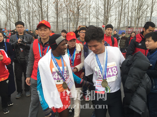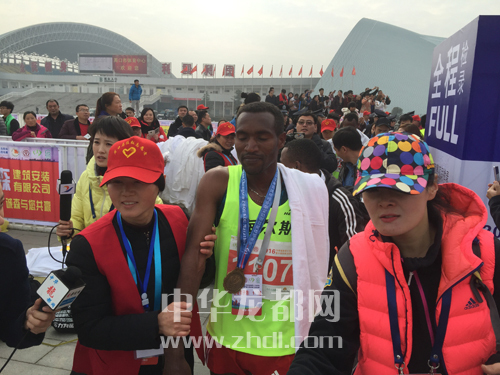 ????經(jīng)過激烈角逐,21歲的小伙子李鴻浩以1小時12分56秒奪得了男子半程馬拉松第一名,張妮以1小時24分57秒奪得女子組冠軍。全程馬拉松男、女冠軍分別被來自埃塞爾比亞的兩位選手Bekele和Meskerm·Gutu·Tola以2小時16分40秒和2小時44分43秒奪得。