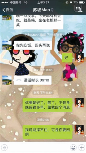 史國平與女友當晚的微信聊天 研究生送醫(yī)后搶救無效 家屬從史的室友處了解到,史國平在22時許回到宿舍,回去的路上他還吐了一次。 23時06分,史國平在宿舍里跟女友琪琪用微信語音打了一通電話,通話9分鐘10秒。 23時54分,琪琪在微信里留言:“你要是好了,醒了,不管多晚或者多早,給我回個消息。”16日零點零6分,琪琪睡覺前留言“我可能撐不住,可是你要回啊”。 這些留言史國平都沒看到。在掛掉電話后不久,他就倒在地上,室友見其異常后,立即聯(lián)系學(xué)校的老師,后來用滴滴打車將其送醫(yī)。史的舅舅韋先生說,學(xué)校方面“連120急救電話都沒打”。 15日23時27分,史國平被送往鎮(zhèn)江的三級甲等醫(yī)院江濱醫(yī)院搶救。 16日1時20分左右,醫(yī)院宣告史國平搶救無效身亡,診斷結(jié)論為猝死。當韋先生和史國平的父母等人趕到醫(yī)院時,史國平已無生命體征。 “聚餐我們不反對。但是老師在場,怎么能讓學(xué)生喝酒?而且一喝喝這么多。”韋先生說。 史的母親韋女士說,史國平“平時在家只喝一點啤酒,白酒根本不喝”。 身亡研究生即將讀博士 史的老家在鎮(zhèn)江市丹陽縣農(nóng)村,距江蘇大學(xué)只有一小時車程,史國平學(xué)業(yè)不忙的時候,會在周末回家看望父母和爺爺奶奶?!八仟毭纾苄㈨?。很上進,也很爭氣。家里把他培養(yǎng)出來不容易。眼看他都要讀博士了,人沒了。” 在微信里,史國平的昵稱是“蘇坡man”,這是英語superman(意為“超人”)的諧音。從朋友圈里的文字,能看到他生前留下的痕跡。 9月29日,他說:“人生總是在糾結(jié)中度過,也是混蛋,也是無奈?!?/p> 10月13日,他轉(zhuǎn)發(fā)了一條業(yè)內(nèi)新聞《棄用內(nèi)燃機德國迎來全電動時間表》,并說“可以有用武之地了”。 在杭州參加過電氣科研領(lǐng)域的一次會議后,10月21日,他寫下一段話:“千里迢迢,前來交流。與院士影,與大牛談??蒲兄?,漫漫修遠。杭州之行,回味良多?!?/p> 史國平的微信個人簽名為:“優(yōu)秀是第二等的選擇,第一等的選擇是自在?!?/p> 校方通報只字未提飲酒 1月17日晚,江蘇大學(xué)學(xué)生工作處向當?shù)孛襟w發(fā)送一份《關(guān)于我校學(xué)生史國平猝死的情況通報》。 通報稱:“2017年1月15日晚,我校研究生史國平的導(dǎo)師邀請課題組同學(xué),一起在校外舉行寒假離校前的聚餐活動,聚餐活動至當日晚20時30分左右。 “隨后,史國平與部分同學(xué)在餐廳聊天至22時15分左右,并與同學(xué)同行于22時50分走回自己宿舍?;氐剿奚岷螅穱脚c其女朋友通話約8分鐘左右。之后,自己突然感覺不適,同室2名同學(xué)發(fā)現(xiàn)后,立即組織同學(xué)于23時27分送往(鎮(zhèn)江)江濱醫(yī)院(鎮(zhèn)江三級甲等綜合醫(yī)院之一)搶救,并向?qū)W校相關(guān)老師、領(lǐng)導(dǎo)報告。史國平所在學(xué)院的領(lǐng)導(dǎo)、導(dǎo)師及輔導(dǎo)員第一時間到達醫(yī)院,并要求醫(yī)院全力搶救。輔導(dǎo)員了解情況后,及時通知史國平父母,請其盡快趕來醫(yī)院。搶救至次日凌晨1時20分左右,醫(yī)院宣告史國平搶救無效身亡,診斷結(jié)論為猝死。” 北青報記者注意到,江蘇大學(xué)的這份通報只字未提“喝酒”一事。 18日上午,北青報記者打通江蘇大學(xué)宣傳部部長辦公室電話,一名值班老師表示,事情還在處理。北青報記者詢問:是否調(diào)查喝酒情況?相關(guān)老師有無責(zé)任?該名老師稱“不是你說的那樣”,北青報記者請校方對此作出回應(yīng),該老師稱“不了解情況”,隨后掛斷電話。 18日晚,史國平的導(dǎo)師朱教授給北青報記者打來電話,介紹了當晚飯桌上的情況。朱教授稱,在飯桌上,他并沒有給學(xué)生勸過酒,因為飯桌上串來串去,他確實不知道當時史國平喝了多少。朱教授說:“我自己有胃潰瘍,不喝白酒,只喝了一點黃酒。我不可能勸別人喝。” 朱教授稱,從當晚飯局上的情況看,史國平比較興奮,目前還不清楚導(dǎo)致他死亡的真正原因?!笆穱绞俏业暮脤W(xué)生,因為他品學(xué)兼優(yōu),我才推薦保送博士生的。他的父母知道我對他有多好。這是我破天荒第一次遇到這樣的事。最好的學(xué)生失去了,我的心情也不好。” 截至發(fā)稿前,史國平的家屬表示,目前校方已與他們就善后事宜初步達成一致。 |