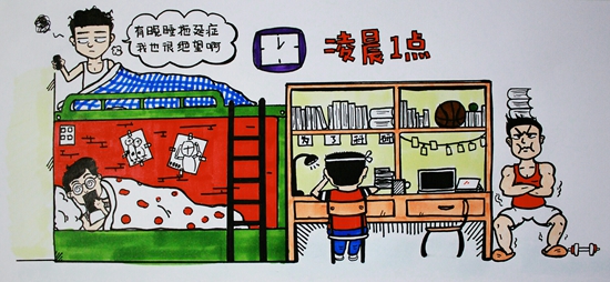 ????凌晨2點(diǎn),戴著三層防塵口罩的邵思齊繼續(xù)研磨著土壤和植物材料。粉塵讓他有點(diǎn)睜不開(kāi)眼。他在心里盤(pán)算著:實(shí)驗(yàn)室4天后關(guān)門(mén),今天要磨好土,粉好樣,明天浸泡過(guò)濾,然后預(yù)約上機(jī)。 ????邵思齊是四川一所高校2013級(jí)本科生,兩年前主動(dòng)要求進(jìn)入導(dǎo)師的課題組參與科研。在去年9月,他相繼收到清華大學(xué)、上海交通大學(xué)、浙江大學(xué)的碩士研究生推免錄取通知書(shū)。 ????在他看來(lái),科研之路并不輕松,甚至“有些艱苦”,熬夜更是家常便飯?!巴砩?2點(diǎn),我把第五次預(yù)實(shí)驗(yàn)的結(jié)果發(fā)給導(dǎo)師,他依然‘秒回’我?!鄙鬯箭R笑著說(shuō),“雖然他第六次‘粉碎’了我的‘玻璃心’。” ????3月13日,中國(guó)高校傳媒聯(lián)盟面向全國(guó)20701名大學(xué)生發(fā)起投票,數(shù)據(jù)顯示,23點(diǎn)之前就寢的受訪者占21%,23點(diǎn)到零點(diǎn)之間就寢的占52%,22%的受訪者表示在零點(diǎn)到凌晨2點(diǎn)間就寢。在受訪者中,認(rèn)為就寢時(shí)間在23點(diǎn)之后即為熬夜的占35%,選擇零點(diǎn)之后的占53%,選擇凌晨2點(diǎn)以后的占12%。 ????大學(xué)生熬夜理由特別多 ????邵思齊坦言,科研之路上,自己不敢說(shuō)勤奮,很多學(xué)生的努力程度遠(yuǎn)在他之上。他提到同實(shí)驗(yàn)室的師兄,整個(gè)寒假都“泡”在實(shí)驗(yàn)室里。為了拿到“最好最嚴(yán)謹(jǐn)”的實(shí)驗(yàn)數(shù)據(jù),二十五六個(gè)小時(shí)的實(shí)驗(yàn)過(guò)程師兄都會(huì)實(shí)時(shí)監(jiān)控。 ????“整個(gè)實(shí)驗(yàn)過(guò)程期間是沒(méi)有覺(jué)睡的,回去補(bǔ)睡,然后再利用隨后的兩三天讀論文和資料,對(duì)比實(shí)驗(yàn)數(shù)據(jù)找問(wèn)題?!彼忉?zhuān)斑@兩三天也是‘緩沖’,為下一個(gè)實(shí)驗(yàn)過(guò)程做身體和知識(shí)的準(zhǔn)備?!?/p> ????天津一所高校2014級(jí)本科生陳倩倩在上一個(gè)寒假和同學(xué)參加了“2017全美數(shù)學(xué)建模大賽”,比賽一共4天,他們?cè)谫e館里“關(guān)”了4天,也熬了4天的夜。 ????“前3天都是凌晨2點(diǎn)多睡的,最后一天我一直熬到早上6點(diǎn)?!痹陉?duì)伍中,陳倩倩負(fù)責(zé)翻譯,她需要把團(tuán)隊(duì)的成果——兩萬(wàn)字論文翻譯成英語(yǔ)。 ????她清晰記得,結(jié)束前一晚,22頁(yè)的論文她還有將近8頁(yè)的內(nèi)容沒(méi)來(lái)得及翻譯。論文里的專(zhuān)業(yè)術(shù)語(yǔ)多,部分中文詞語(yǔ)很難找到準(zhǔn)確的英文與之對(duì)應(yīng)。有時(shí)為了一個(gè)詞,她需要翻看數(shù)本專(zhuān)業(yè)詞典來(lái)權(quán)衡判斷使用哪個(gè)更為準(zhǔn)確。為了讓自己保持清醒,她“抱著一堆咖啡一堆茶猛喝”,最后站起來(lái)心悸頭暈惡心。 ????第二天早晨6點(diǎn),陳倩倩終于完成了翻譯,還沒(méi)來(lái)得及回味這份成就感便匆匆忙忙出發(fā)去趕回家的火車(chē)了。10個(gè)多小時(shí)的車(chē)程后,她終于到家,多日的勞累讓她直言自己“感覺(jué)身體被掏空”。 ????“我其實(shí)很討厭熬夜,每天睡得都很早”, 陳倩倩每當(dāng)回想起那次熬夜的經(jīng)歷都心有余悸,“但是那幾天因?yàn)樽霾煌瓴坏貌话疽??!?/p> ????與陳倩倩不同,浙江一所高校的戴晴視熬夜為“家常便飯”。她是一家社團(tuán)的第一學(xué)生負(fù)責(zé)人,同時(shí)活躍在校園里不同的舞臺(tái)和杯賽中。在她看來(lái),零點(diǎn)之后睡覺(jué)很正常,忙的時(shí)候就在社團(tuán)辦公室通宵。 ????戴晴所在的學(xué)校實(shí)行夜晚熄燈斷網(wǎng)制度,但她覺(jué)得這沒(méi)有阻止周?chē)税疽??!拔覍儆凇稣隆?,室友也睡得不早。”陳倩倩表示,自己寢室的同學(xué)基本會(huì)在臨近熄燈的時(shí)候去洗漱,關(guān)燈后爬上床,“刷刷手機(jī),或者用平板電腦看緩存的視頻?!?/p> ????邵思齊也提到,自己的學(xué)校也有夜間斷電的制度。他通常會(huì)在實(shí)驗(yàn)室待到近凌晨再回寢室。他笑稱(chēng)室友們是“鬼馬”少年,和大多數(shù)大學(xué)男生一樣喜歡打游戲。“有時(shí)候關(guān)了電腦就玩手機(jī)游戲,一次凌晨4點(diǎn)我看到對(duì)床室友的手機(jī)還亮著?!鄙鬯箭R說(shuō)。 ????中國(guó)高校傳媒聯(lián)盟的調(diào)查結(jié)果顯示,在“您熬夜的原因”問(wèn)題中,74%的受訪大學(xué)生選擇“玩手機(jī)”,35.7%的受訪大學(xué)生表示“習(xí)慣,晚睡強(qiáng)迫癥”, 24%的受訪大學(xué)生選擇“學(xué)習(xí)”。選擇“失眠”的占30.65%,選擇“工作”和“游戲”的分別占14%和15%。 ????“作”(zuō)出來(lái)的“晚睡拖延癥” ????張克的“熬夜史”在朋友圈中已經(jīng)出了名。許久未見(jiàn)的好友和他打招呼,第一句便是,“最近還熬夜畫(huà)圖嗎?” ????張克是一所知名高校建筑學(xué)院2015級(jí)的研究生。在朋友眼中,他的大學(xué)過(guò)得非常辛苦,有畫(huà)不完的圖紙,“不是在熬夜,就是在去熬夜的路上?!?/p> ????“其實(shí)這都和自律有關(guān)。”張克說(shuō),“很多時(shí)候都是‘作’出來(lái)的吧。”對(duì)他而言,凌晨1點(diǎn)前入睡已經(jīng)算比較早,而有時(shí)并不是因?yàn)樽鳂I(yè)或趕圖,只是單純地拖延入睡時(shí)間。 ????張克同時(shí)補(bǔ)充道,“不過(guò)研