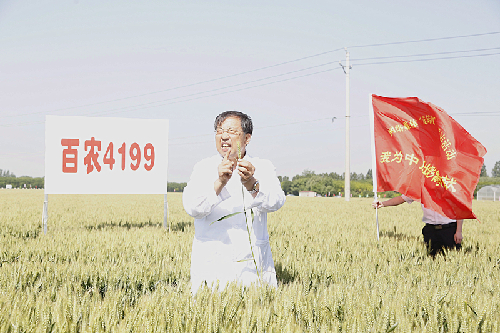 如今,他育出的另一個(gè)“逆天”,小麥品種是“百農(nóng)4199”,“從立項(xiàng)到現(xiàn)在成果成熟可以推廣,用了16年?!?/p>