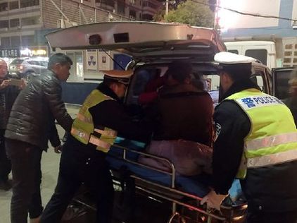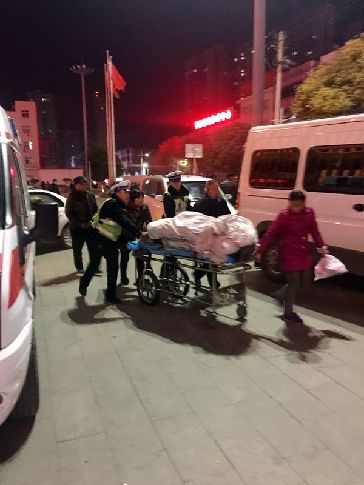 交警將病人從車?yán)锾С?/p>