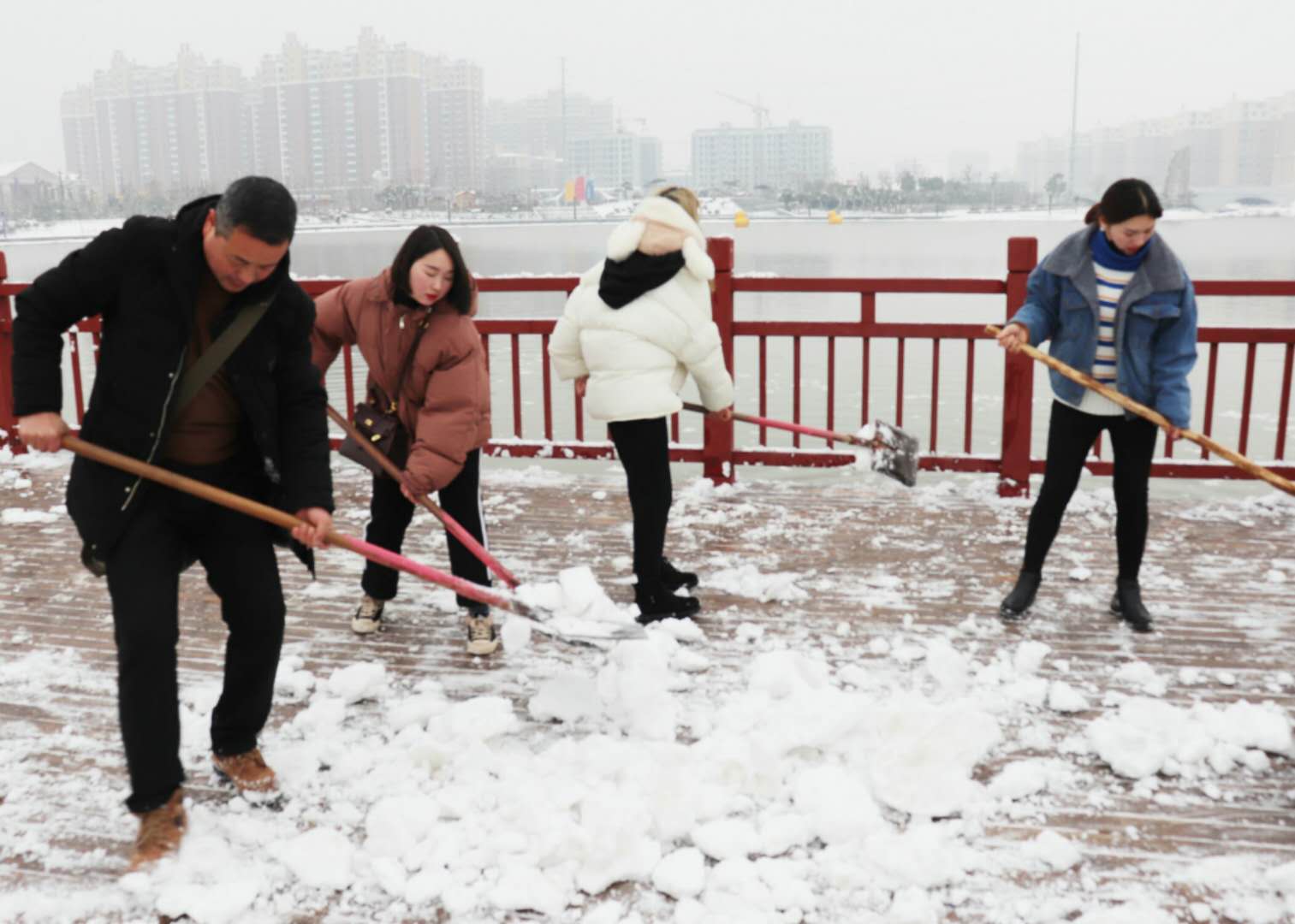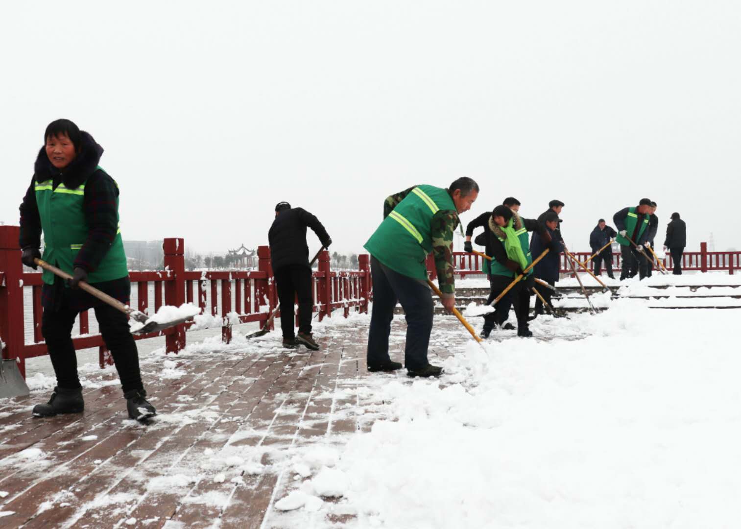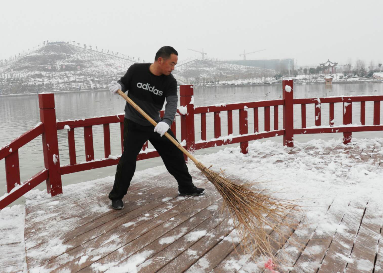 截止到下午5時,還有職工和志愿者在公園里清理冰雪,市政園林中心副主任李紅衛(wèi)帶領職工堅守崗位,形成一道靚麗的風景線。鹿邑縣市政園林中心主任劉克一說:“群眾滿意開心游玩,我們累點應該的,志愿者的義務清掃讓我們和游客深受感動!”