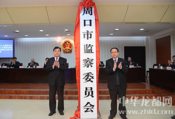 市委書記、市人大常委會主任劉繼標,市人大常委會副主任、黨組書記劉國連為新成立的周口市監(jiān)察委員會揭牌。記者王映攝