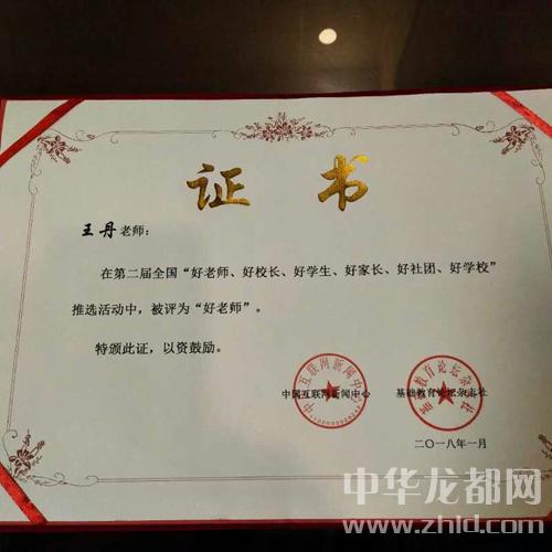 1月5日至6日,由中國基礎(chǔ)教育論壇雜志社和中國互聯(lián)網(wǎng)新聞中心主辦的“好教師先進(jìn)事跡報告會暨第二屆六好展示活動”在北京中關(guān)村隆重舉行。王丹作為一名“好老師”在會上作了發(fā)言。她發(fā)言的題目是《家訪,讓我們走進(jìn)孩子的內(nèi)心》。記者了解到,王丹在平時的教育工作中一直把家訪當(dāng)作工作中的重要任務(wù),正是由于重視家訪,有不少“問題”兒童在她的教育下得到身心健康成長,成為社會的有用之才。當(dāng)日的會上,國家總督學(xué)顧問、原教育部副部長張?zhí)毂?,國家副總督學(xué)、原教育部基礎(chǔ)教育司司長王文湛,北京市朝陽區(qū)教委副主任、北京中學(xué)校長夏青峰,國家義務(wù)教育教學(xué)課程研制組核心成員、北京市中關(guān)村第三小學(xué)校長劉可欽,中國人生科學(xué)學(xué)會副會長兼中小學(xué)教育專業(yè)委員會會長聶延軍和科學(xué)會秘書長孟凡浩都做了重要講話。