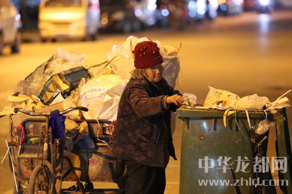 如果天氣允許,每天傍晚6點半到深夜11點之間,在淮陽縣西關(guān)弦歌西路和新民南路交叉口附近,你都會見到一位身材矮小、騎著或推著一輛破舊三輪、上年紀(jì)、一只眼睛失明的老奶奶,在一個又一個垃圾桶前停下,翻揀廢舊紙箱、塑料瓶。把揀拾的廢品放上三輪車,老人還不忘用隨身帶的鐵锨清理好凌亂的垃圾,再到下一個垃圾桶邊繼續(xù)翻揀。