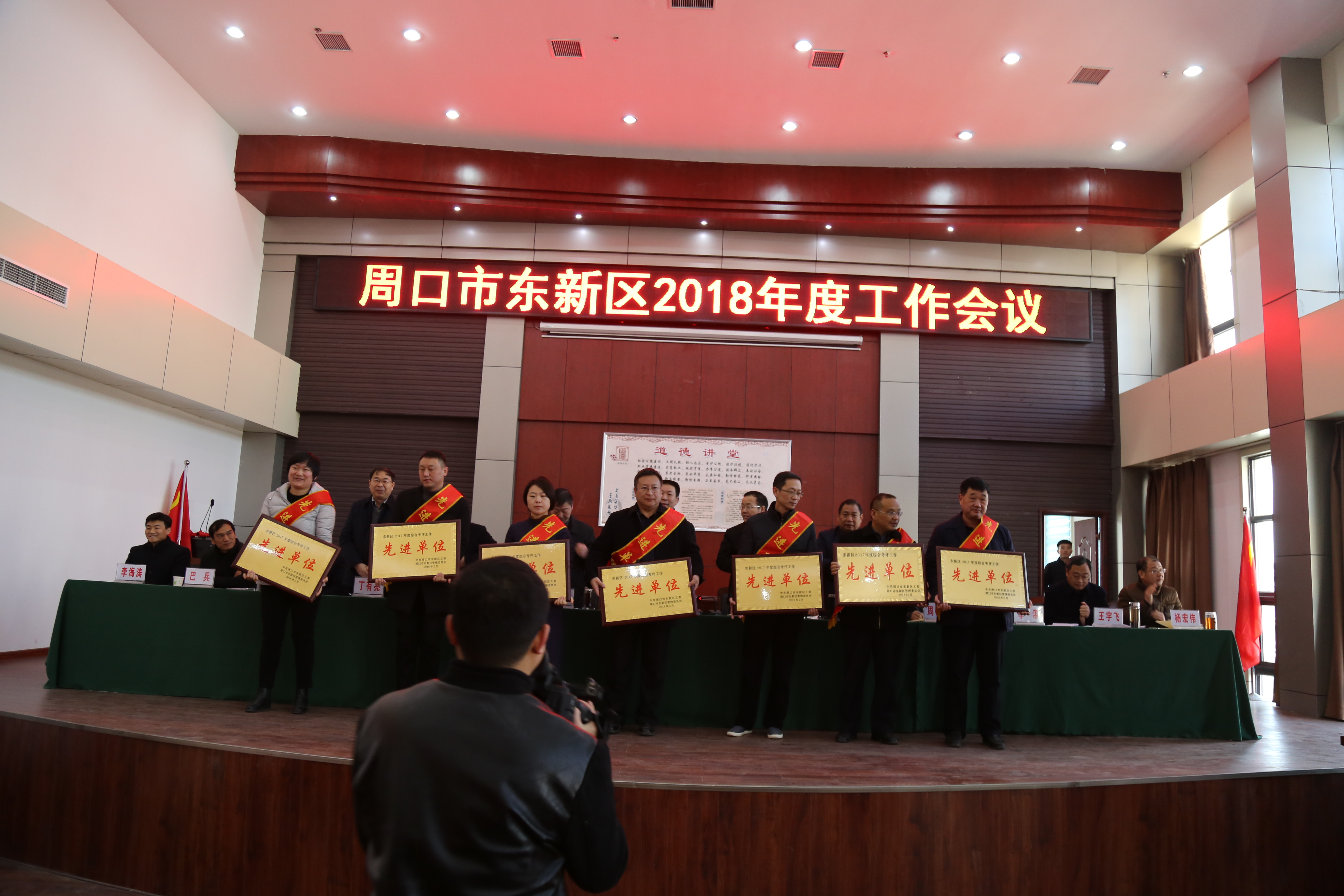 中華龍都網(wǎng)訊(周口報(bào)業(yè)全媒體記者 張勁松 通訊員 蘇千)適應(yīng)新時(shí)代 聚焦新目標(biāo) 落實(shí)新部署。2月3日,東新區(qū)2018年度工作會(huì)議在該區(qū)商務(wù)中心區(qū)會(huì)議室隆重召開(kāi)。區(qū)機(jī)關(guān)副科級(jí)以上干部、各鄉(xiāng)(辦)班子成員、行政村(社區(qū))支部書記、受表彰人員及單位代表等160余人參加會(huì)議。東新區(qū)黨工委書記閆立超、管委會(huì)主任張建黨及全體班子成員出席會(huì)議,東新區(qū)紀(jì)委書記韓華主持會(huì)議。