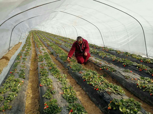 2016年,在周口職業(yè)技術(shù)學(xué)院的資助和專業(yè)老師的指導(dǎo)下,賈留功在自家的責(zé)任田里建起了草莓大棚。他用學(xué)到的草莓栽培技術(shù)精心管理,草莓長(zhǎng)勢(shì)很好,當(dāng)年就獲得了不菲的收入,成為全村第一個(gè)靠技朮幫扶淘到第一桶金的貧困戶。