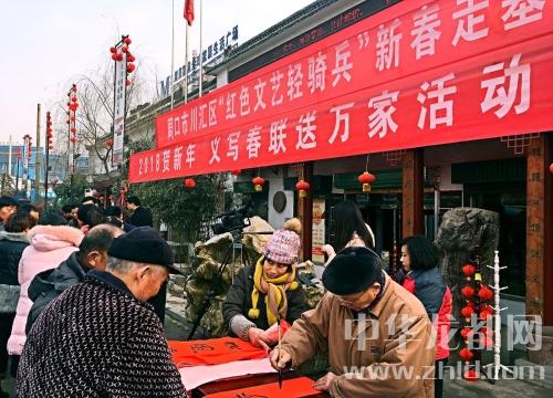 中華龍都網(wǎng)訊 (周口報(bào)業(yè)全媒體記者 彭慧 文/圖)春節(jié)即將來臨,喜慶的氛圍逐漸濃厚,近來中心城區(qū)相繼舉辦文化活動,為廣大市民義寫春聯(lián),送去新春的祝福。2月9日上午,川匯區(qū)、川匯區(qū)書法家協(xié)會聯(lián)合華威民俗文化博物苑,積極響應(yīng)“紅色文藝輕騎兵”新春走基層號召,一副副吉祥喜慶寓意的春聯(lián),免費(fèi)贈送給千家萬戶。據(jù)悉,這一公益活動已持續(xù)14年之久。