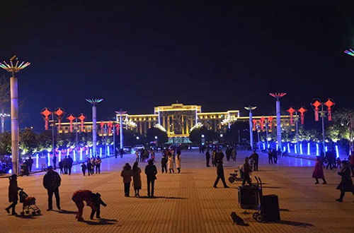 亮起來的不僅是老城區(qū),建設(shè)一新的新城區(qū)各單位樓體,小區(qū)樓體也都亮了起來,各種燈飾隨著樓體造型蜿蜒曲折,熠熠生輝。新華路路旁邊的行道樹都換上了“新衣”,樹冠自上而下披掛著五顏六色的流星燈飾,夢幻迷離,走在其中,仿佛進(jìn)入了一個(gè)童話般的世界。