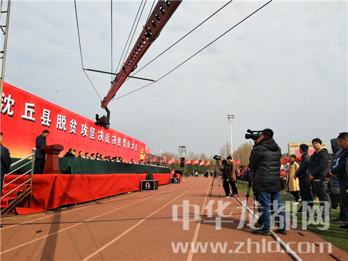 中華龍都網(wǎng)訊(周口報(bào)業(yè)全媒體記者韋偉 通訊員王佳佳)2018年3月16日10點(diǎn),沈丘縣新區(qū)廣場,一場近萬人參與的脫貧攻堅(jiān)決戰(zhàn)決勝誓師大會正在有序推進(jìn)。