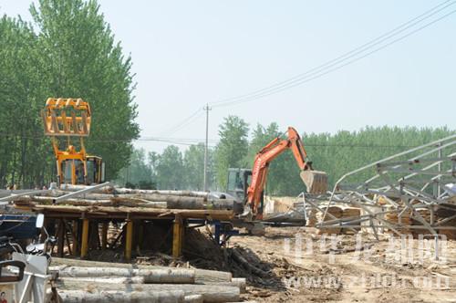 中華龍都網(wǎng)訊(周口報(bào)業(yè)全媒體記者 張勁松 通訊員 蘇千 文/圖)4月18日,東新區(qū)城管中心在該區(qū)國(guó)土局、許灣鄉(xiāng)政府的配合下,出動(dòng)執(zhí)法人員120多名,執(zhí)法車(chē)輛10輛,對(duì)許灣鄉(xiāng)程寺行政村6處違法占地、違章建設(shè)進(jìn)行強(qiáng)制拆除。