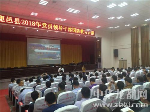 中華龍都網(wǎng)訊(周口報業(yè)全媒體記者 李瑞才 文/圖)4月20日上午,周口軍分區(qū)副司令員薛振喜到鹿邑縣委黨校一樓報告廳,為200多名黨員領(lǐng)導干部上國防教育講座??h委書記梁建松主持。在家的縣四個班子領(lǐng)導、縣處級領(lǐng)導、縣人武部全體人員、縣委各部委、縣直機關(guān)各單位主要負責同志以及各鄉(xiāng)鎮(zhèn)(街道辦事處、管委會)黨委書記、鄉(xiāng)鎮(zhèn)長(主任)、人武專干等參加會議。