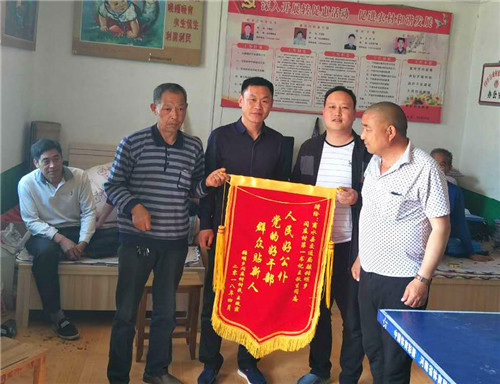 中華龍都網(wǎng)訊(周口報(bào)業(yè)全媒體記者 付永奇 通訊員 胡書(shū)廣)4月19日,商水縣張明鄉(xiāng)閆莊行政村貧困戶王改霞家人將一面寫(xiě)有“人民好公仆,黨的好干部,群眾貼心人”的錦旗送到閆莊行政村村室,感謝商水縣交通局派出的駐村“第一書(shū)記”王秋生長(zhǎng)期以來(lái)對(duì)她們一家的關(guān)心和幫助。
