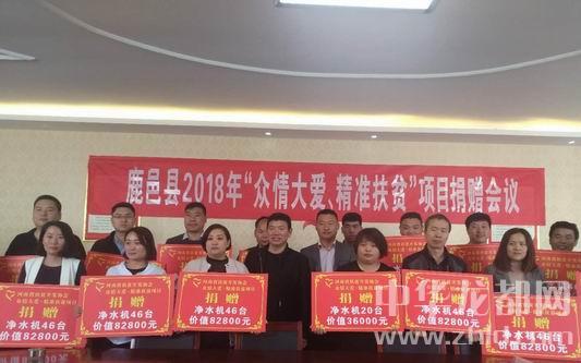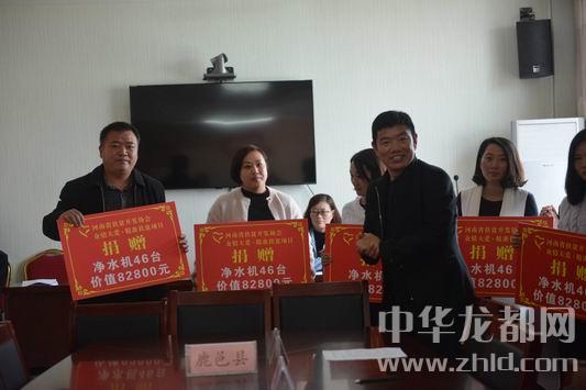 中華龍都網(wǎng)訊(周口報業(yè)全媒體記者 李瑞才 文/圖)4月26日上午,2018年“眾情大愛、精準扶貧”捐贈儀式在鹿邑縣掀開大幕。河南省扶貧開發(fā)協(xié)會、河南省“眾情大愛、精準扶貧”項目組委會主任衛(wèi)建亞出席儀式并現(xiàn)場向鹿邑縣捐贈1000臺價值180萬元的凈水設備。來自全縣24個鄉(xiāng)鎮(zhèn)(辦事處)的1000名貧困戶家庭很快就可以飲用到放心安全的“扶貧水”了。