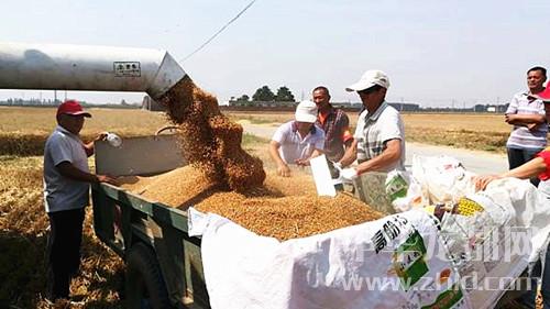 6月1日,張莊鄉(xiāng)劉村村民在村干部指導幫助下,趁晴好天氣搶收小麥。