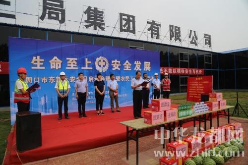 6月4日上午,由東新區(qū)管委會主辦、中建三局集團有限公司中原分公司承辦的周口市東新區(qū)安全月啟動會暨關愛農民工送清涼活動在順和家園項目建設工地舉行。