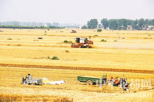 現(xiàn)在我市麥?zhǔn)找呀猜?。收獲時(shí),縱橫交錯的麥田一片金黃,把鄉(xiāng)村裝點(diǎn)得格外美麗。收割機(jī)在麥田中穿梭,陣風(fēng)吹過,麥浪隨風(fēng)起舞,猶如一幅田園畫卷。呂耀光 攝