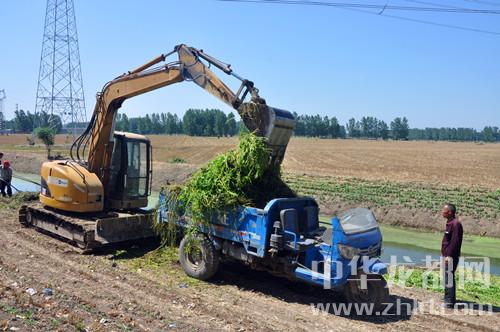 為切實做好環(huán)境整治工作,近日,商水縣加大環(huán)保督察問題整改工作力度,開展大排查、大整治、大掃除行動,確保整改到位。6月12日,一臺大型機械正在打撈運送河道水面上的漂浮垃圾(上圖);工作人員正在駕駛小船打撈河道水面上的雜草和垃圾(下圖)。記者 付永奇 通訊員 魏紅 攝