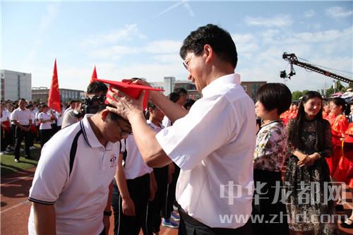 與會領(lǐng)導(dǎo)分別為成人學(xué)生代表佩戴了成人帽和成人紀(jì)念章,教師和家長代表也走進學(xué)生中間,為學(xué)生佩戴了成人帽和成人紀(jì)念章。