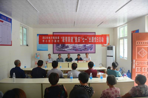中華龍都網(wǎng)訊(周口報業(yè)全媒體記者 馬治衛(wèi) 通訊員 蘇童)為喜慶中國共產(chǎn)黨建黨97周年,夯實貧困村基層組織基礎,促進脫貧攻堅工作深入開展,按照中共周口市委組織部和周口市直工委要求,6月26日上午,周口市地稅局組織相關科室負責人走進幫扶村太康縣王集鄉(xiāng)李小村行政村開展“黨建聯(lián)幫聯(lián)建暨慶七一主題黨日”活動。這是該局在幫扶村“兩委”成功換屆之后第一次舉辦主題黨日活動,市、縣、鄉(xiāng)各級領導及駐村工作隊和幫扶村30余名黨員代表參加了此次活動。