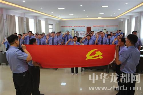 最后,全體干警面對黨旗進(jìn)行了莊嚴(yán)的宣誓,鏗鏘的誓言堅定了干警們永遠(yuǎn)跟黨走的信念!