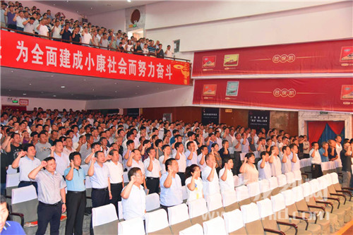 會(huì)上,盧偉帶領(lǐng)與會(huì)人員進(jìn)行脫貧攻堅(jiān)全面沖刺集體宣誓。
