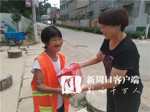 上午10時許,欣中基清潔公司經(jīng)理張志宏來到邵寨行政村??吹铰访娓筛蓛魞簦芨吲d。除了例行巡視,張志宏此行還有一項任務:向每位保潔員發(fā)放一件飲料。“天氣持續(xù)高溫,保潔員們露天辛勤勞動,給村民們創(chuàng)造了良好的生活環(huán)境。因此,公司決定開展慰問活動?!苯舆^飲料,邵天錄等6名保潔員滿臉笑容地連聲道謝。