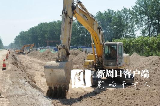 當日9時許,記者來到施工現(xiàn)場,感受到的不僅是天氣的炎熱,更感受到了工人們爭分奪秒趕進度的熱情以及施工現(xiàn)場緊鑼密鼓推項目的熱潮。施工現(xiàn)場19臺挖掘機、5臺壓路機,2臺灰土拌和機以及數(shù)臺渣土車、裝載機齊齊上陣,10臺灑水車在路面中間來回穿梭,整個現(xiàn)場機械轟鳴,緊張有序,呈現(xiàn)出一派熱火朝天的景象。