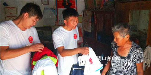 捐贈儀式上,太康縣商務局局長李曉虹和清集鎮(zhèn)黨委書記吳文靜向張子穎村捐贈愛心體恤衫。隨后由各位領導帶隊向困難群眾發(fā)放愛心體恤衫,并鼓勵他們樹立信心、克服困難,早日走向富余。