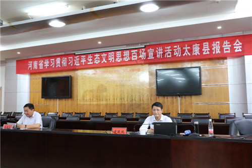7月26日,河南省學(xué)習(xí)貫徹習(xí)近平生態(tài)文明思想百場宣講活動太康縣報告會在縣綜合樓會議室舉行。省委宣講團成員、省委宣傳部理論教育講師團調(diào)研員曾琰珉主講,太康縣委書記王國璽主持并與該縣四個班子領(lǐng)導(dǎo)及副處級以上干部和縣鄉(xiāng)兩級負責(zé)同志及相關(guān)人員共同聆聽了報告。