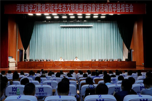 8月7日下午,河南省學(xué)習(xí)貫徹習(xí)近平生態(tài)文明思想百場(chǎng)宣講活動(dòng)西華報(bào)告會(huì)在縣商務(wù)中心禮堂舉行。省委宣講團(tuán)成員、省環(huán)保廳宣教中心主任焦萬益作宣講報(bào)告。西華縣委書記林鴻嘉主持報(bào)告會(huì)并講話,縣四個(gè)班子領(lǐng)導(dǎo)與各縣直單位負(fù)責(zé)人、各鄉(xiāng)鎮(zhèn)黨政負(fù)責(zé)人等700多人共同聆聽輔導(dǎo)報(bào)告。
