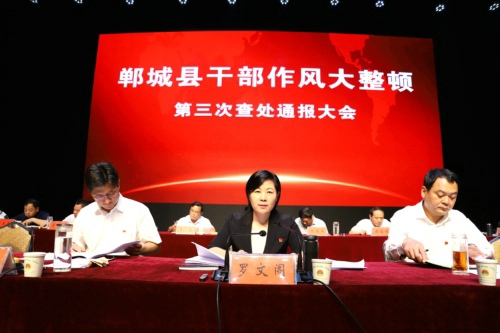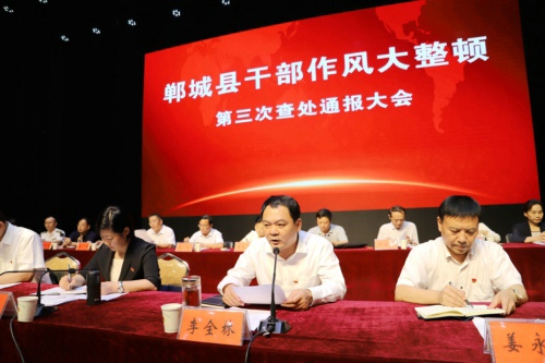 8月15日下午,鄲城縣召開干部作風(fēng)大整頓第三次查處通報(bào)大會(huì)。貫徹全市干部作風(fēng)大整頓查處通報(bào)會(huì)議精神和縣委十二屆四次全會(huì)暨縣委工作會(huì)議精神,通報(bào)典型案例,宣布處理決定,傳導(dǎo)工作壓力,夯實(shí)工作責(zé)任,為進(jìn)一步推進(jìn)各項(xiàng)工作任務(wù)落實(shí)、打好打贏脫貧攻堅(jiān)戰(zhàn)提供堅(jiān)強(qiáng)有力的作風(fēng)保障??h委書記羅文閣發(fā)表講話,縣長(zhǎng)李全林主持。全縣副處級(jí)以上領(lǐng)導(dǎo)干部和縣、鄉(xiāng)、村各級(jí)各部門負(fù)責(zé)人參會(huì)。