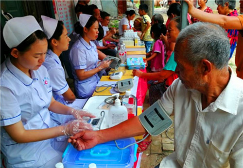 當(dāng)天一大早,村民早早地就等候在活動(dòng)現(xiàn)場(chǎng),每一處測(cè)量、檢查點(diǎn)都排起了長(zhǎng)隊(duì)。義診中,村民仔細(xì)詢問自己的身體狀況,醫(yī)護(hù)人員都耐心地一一給予解答。 此次義診活動(dòng),共為曹堂行政村4個(gè)自然村600余名村民提供健康咨詢、健康檢查,免費(fèi)贈(zèng)送價(jià)值5萬余元藥品,發(fā)放宣傳手冊(cè)2000冊(cè),受到村民們的一致好評(píng)。