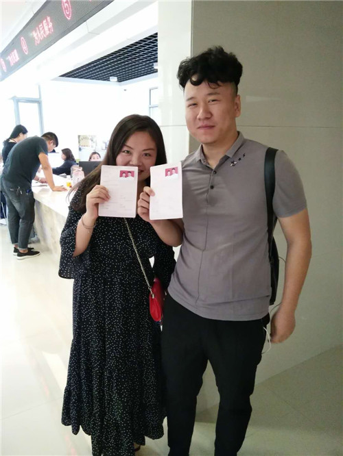 市民劉麗(化名)和男友相識多年,他們從朋友發(fā)展到戀人,今天一早就來排隊領(lǐng)證,拿到紅彤彤的結(jié)婚證,二人臉上露出幸福的笑容?!捌呦κ侵袊那槿斯?jié),今天領(lǐng)證很浪漫,以后每年的七夕,都是我們的結(jié)婚紀(jì)念日?!?劉麗說。