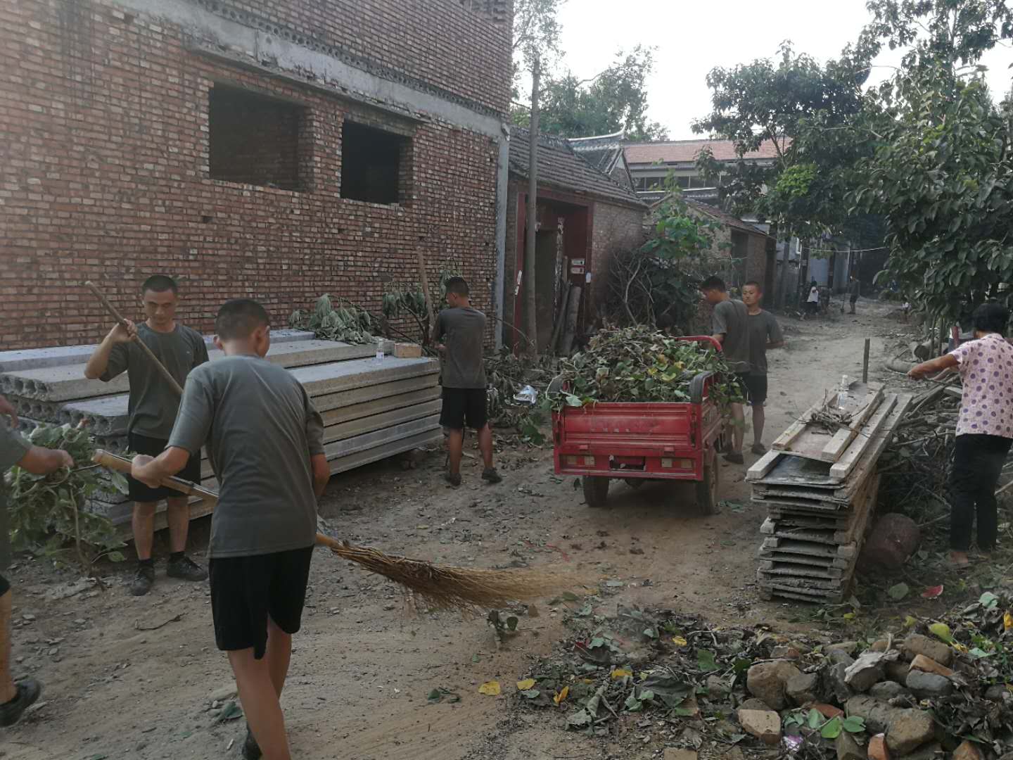 當(dāng)日,太康縣410名預(yù)定新兵走進(jìn)該縣高賢鄉(xiāng)小郭行政村,幫助村民打掃街道衛(wèi)生、鏟除路邊雜草、清理村舍淤泥,并對(duì)暴雨過(guò)后倒塌的院墻進(jìn)行修復(fù),“小戰(zhàn)士們”一個(gè)個(gè)生龍活虎、斗志昂揚(yáng),不怕臟、不怕累,爭(zhēng)著搶著進(jìn)行義務(wù)勞動(dòng),幫助村民收拾街道院落。