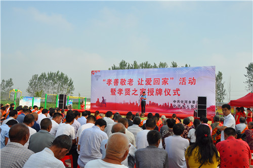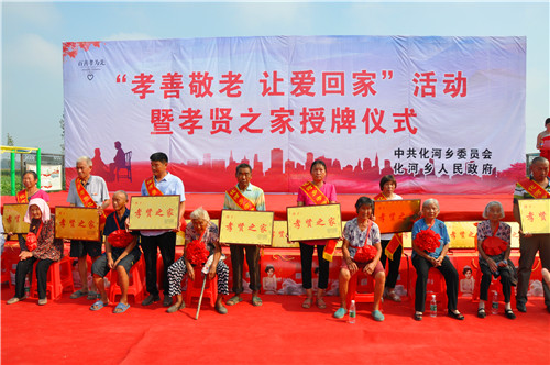 8月30日上午,化河鄉(xiāng)“孝善敬老 讓愛回家”活動暨孝賢之家授牌儀式在該鄉(xiāng)高老村文化廣場舉行??h委常委、統(tǒng)戰(zhàn)部長李遠富、副縣長何海中、縣工會主席盧紅兵應邀出席。化河鄉(xiāng)黨政班子和近千群眾參加了活動儀式。