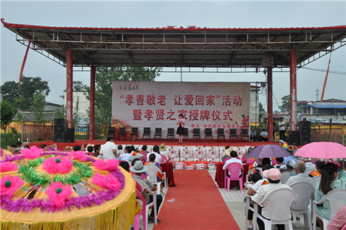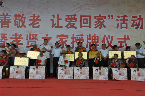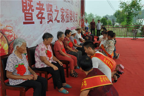 大會開始之前,來自該鄉(xiāng)20個行政村的廣場舞代表隊、戲曲代表隊、嗩吶代表隊先后出場,訾秀玲一曲《黃土高坡》贏得全場觀眾雷鳴般掌聲。緊接著,好兒子、好媳婦代表上臺為自己的父母磕了3個響頭,以表達對父母養(yǎng)育之恩的感激之情,老人們臉上流露出激動和幸福的淚水,現(xiàn)場掌聲經(jīng)久不息??h領(lǐng)導在主席臺上為36個孝賢之家授牌,并向獲獎?wù)弑硎咀YR。據(jù)介紹,該鄉(xiāng)自開展孝善敬老接老人回家活動以來,已有200多名獨居老人被兒子、媳婦接回家居住。為了表彰接老人回家的好兒子、好媳婦和孝賢之家,該鄉(xiāng)組織、策劃了這次大型活動。